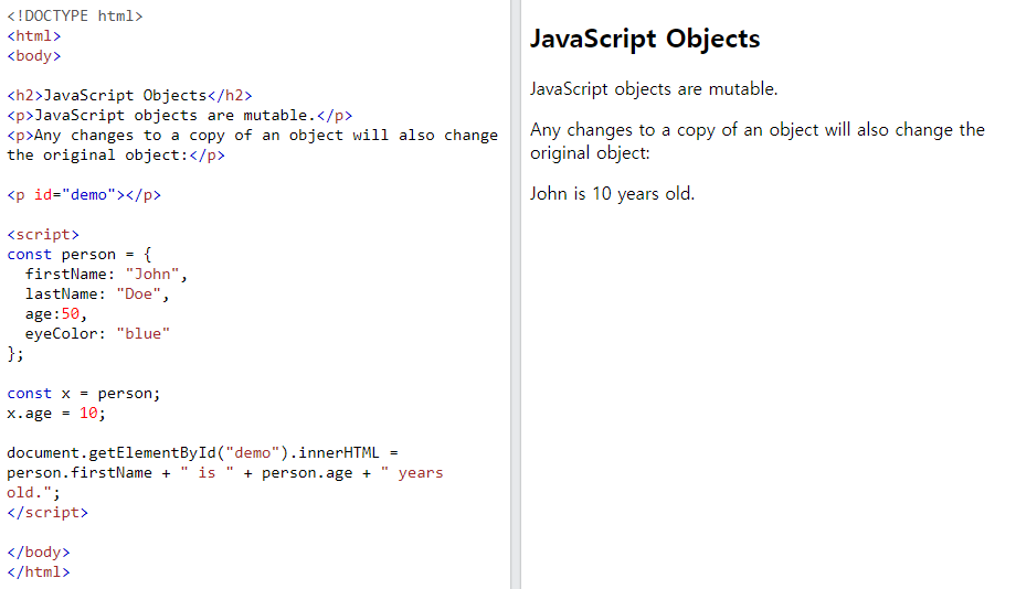 x.age = 10; // person.age도 10으로 변경됩니다.